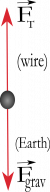 You can draw a free-body diagram for this situation. A free body diagram shows the direction and magnitude of the forces acting on any system. In this case, the Earth and the wire act on the ball in opposite directions. Because the net force on the ball is zero, the size of the force due to the Earth and the force due to the wire must be the same.