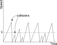Modeling all of these interactions for every electron in the electron current is quite complicated (or almost impossible). While there are several ways to model the electrons in the wire, we will use a model called the Drude Model, which builds off of the idea that the electrons are interacting or bouncing off the positive nuclei in the wire. In this model, the electron will experience short periods of acceleration from the electric field, followed by periods where the electron drastically slows because of collision with a positive nuclei in the wire. The average speed of the electron in this stop/start motion is called the drift velocity which has units of m/s, and we say that the electron “drifts” through the metal. The drift velocity of electrons in a wire is actually quite slow compared to the speed of the individual electrons (the same way that the wind has slow speed compared to the speed of the individual air molecules).