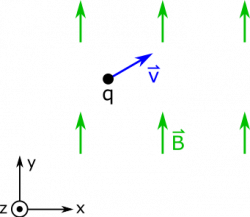 - The charge is in a field $\vec{B} = 15 \text{ mT } \hat{y}$.