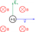$$\vec{F}_{B} = q_{test}\vec{v}_{test}\times\vec{B}.$$