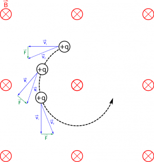 This is a very useful result in cyclotron accelerators where a magnetic field is used to force charged particles into a circular path (while an electric field is used to speed up the charged particles). The circular path (made by the magnetic field) helps contain the accelerator to a smaller area. We can also exploit the tendency to have curved trajectories in mass spectrometers, which can be used to determine the charge to mass ratio of a particle, as particles with different charge-to-mass ratios will curve differently. Using electric and magnetic fields together, we can manipulate the trajectories of charged particles in ways that help us select out only certain kinds of particles; this is used in particle accelerators, but also in simpler situations like cathode-ray screens (which used to be in the big square tv's and computer monitors but have gone out of fashion lately).