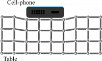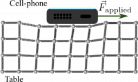 The normal force is curious because it can change its size (so long as the object can support the applied load). The force that the table exerts can increase or decrease if the load changes. This is precisely because of the electrostatic interaction between atoms in the table. The load compresses the material more if it is heavier (figure to the right). Consider placing a cell phone of mass, m, on a horizontal table. The momentum principle tells you that the net force acting on the cell phone is zero (no momentum change) and hence: