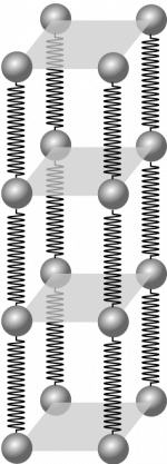 The simplest model we can use for a wire (beyond a single atomic chain), is to model it as many long parallel chains connected by springs. For you to understand this model, you will need to understand how to model two springs connected end-to-end (in series) and two springs connected side-by-side (in parallel).