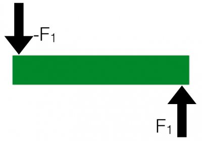 Consider the bar to the right. Two equal sized forces are acting on the bar in opposite directions. In this case, the sum of the forces in each coordinate direction (namely, the vertical direction) is zero. Hence, this situation satisfies the first condition for static equilibrium. However, you can probably easily see that this bar will rotate (