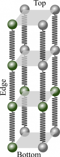 To find the interatomic spring stiffness, you will need to know how many chains of atoms are in the wire (how many side-by-side springs) and how many atoms are in the chain (how many end-to-end springs). Those values can be found by using the bond “length”, which you read about earlier. To remind you, the estimated bond length for Platinum is $d=2.47\times10^{-10}m$.