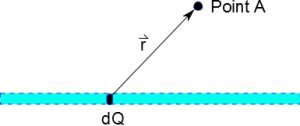 $$d\vec{E} = \dfrac{1}{4\pi\varepsilon_0}\dfrac{dq}{r^2}\hat{r}$$