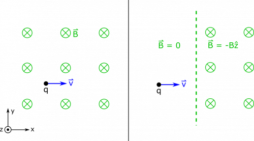 - In the case where the particle comes from outside, the field is a step function – it goes immediately from $0$ to $B$, and we can draw a boundary.