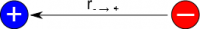 where $\vec{r}_{- \rightarrow +}$ points from the charge producing the field ($q_{-}$ in this case) to the location of interest (where $q_{+}$ is). If we plug this electric field into our equation for the force on the positive charge, we get: