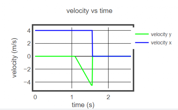 GlowScript 2.8 VPython #Projectile and moving target challenge ''' The people in charge of personnel safety at Cirque du Soleil are concerned about the level of danger in your proposed stunt. In order to reassure them that you have a reasonable chance of being successful with the stunt, you are going to create a computer simulation. Using the minimally working code and the vehicle velocity value from your stunt coordinator, create a simulation that shows you will hit the moving airbag. Be sure to include velocity vs time graphs of both your horizontal and vertical velocities over time. ''' # scene set up DO NOT CHANGE. scene.align='left' scene.width=400 scene.height=200 #scene fov is scaling factor(in radians) greater than 1 zooms out, less than in. scene.fov=.25 # System Objects Table=box(pos=vec(-1,-.55,0),size=vec(2,1.1,2),color=color.orange) Ground=box(pos=vec(1,-1.2,-4),size=vec(6,.2,10),color=color.green) Ball=sphere(pos=vec(-1.9,0.2,.5), radius=.2,color=color.magenta) # ADD you must add some sort of target that starts at either end of the floor # Your target width should be the diamter of the ball # Be mindful your target height will affect your calculations, do not choose a height greater than 0.25 # DO NOT CHANGE. Tells he camera to follow ground after ground has been defined. scene.camera.follow(Ground) # system parameters # DO NOT CHANGE. Time step rate and total run time dt = 0.01 t = 0 tf = 5 # DO NOT CHANGE. Assigns initial vector values to objects set to zero so the can be defined later. Ball.velocity=vector(0,0,0) Ball.acc=vector(0,0,0) Target.velocity=vector(0,0,0) # You will be assigned a velocity for the ball by your teacher. Ballvx=0 # Enter the velocity for the target that you calculate it needs to have in order for the ball to hit it. Targetvx=0 # DO NOT CHANGE. Defines ball and target vectors as what you assigned above and as earths free acceleration. Ball.velocity.x=Ballvx Ball.acc.y=-10 Target.velocity.x=Targetvx #Enter lines of code to produce a velocity time graphs in the x and y direction for the projectile velocityGraph = graph(align='left',width=400, height=200,title='velocity vs time', xtitle='time (s)', ytitle='velocity (m/s)',fast=False) #Only change line 76 . Button Code allows you to run/pause and reset the intial conditions running=False def Run(b): global running running=not running if running: b.text="Pause" else: b.text="Run" bbutton=button(text="Run", pos=scene.title_anchor, bind=Run) def Reset(c): global t, Ball t=0 Ball.pos=vec(-1.9,0.2,.5) Ball.acc=vec(0,-10,0) Ball.velocity.x=Ballvx Ball.velocity.y=0 Target.velocity.x=Targetvx #copy in the initial target position as assigned above when creating the target. cbutton=button(text="Reset", pos=scene.title_anchor, bind=Reset) #End of Button Code ''' Run the code and see what happens. Assuming the ball is the stuntman bicyclist and the target is the truck with an airbag, Make adjustments to the initial conditions of the program and/or write additional code so the program can serve as evidence to safety personnel that the stunt is physically possible. ''' #While true just means run the code all of the time. while True: rate(100) if running: #starts the loop when the run button is pressed. Ball.pos.x=Ball.pos.x+(Ball.velocity.x*dt) #Enter a line of code that gets the target to start moving when the run button is pressed. #Enter another if statement that allows the ball to fall when it gets to the edge of the table. #The statement will need conditions for when to work and likely require multiple lines of code. # Do not modifiy the lines of code below this line. It stops the ball and target when # they have the same x position. While the code is still running the objects don't move when x positions are the same if abs(Ball.pos.x-Target.pos.x)<.03: # less than small increment is needed in case calculation never reaches exactly zero. Ball.velocity.x=0 Target.velocity.x=0 Ball.acc.y=0 Ball.velocity.y=0 # add the code for the velocity time graph so it gets updated in the loop t=t+dt