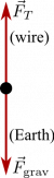 You can draw a free-body diagram for this situation. A free body diagram shows the direction and magnitude of the forces acting on any system. In this case, the Earth and the wire act on the ball in opposite directions. Because the net force on the ball is zero, the size of the force due to the Earth and the force due to the wire must be the same.
