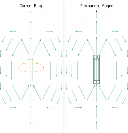 You also may have noticed that this pattern to the magnetic field looks similar to the magnetic field from a bar magnet that we talked about previously - this makes the circular coil a powerful tool. Scientists and engineers will often model a bar magnet (or the Earth's magnetic field) using a circular coil because it is easier to handle mathematically when compared to thinking about the individual atoms/domains in a material. We will return to this idea of a coil of wire frequently over the remaining weeks of the semester.