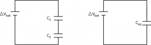 $$\dfrac{1}{C_{eq}} = \dfrac{1}{C_1} + \dfrac{1}{C_2}$$