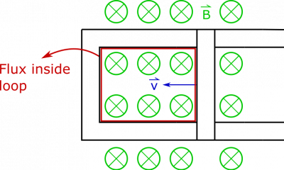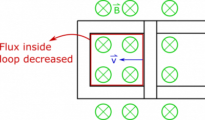 It will be easier to concern ourselves with this value, rather than try to describe the integral calculation each time. As the bar begins moving to the left, the area within the loop begins to close up, as shown below: