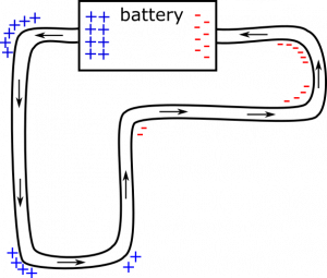 In order to talk about individual charged particles in the circuit, we will have to make an assumption about the charged particles which are actually moving, the ones we think about when we think about “current”.