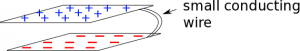 Based on what we know about how charges interact, what would you expect to happen if we connect these plates with a small conducting wire? Remember that in matter (and specifically in conductors), the electrons are the charges that are mobile.