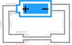 • The distribution of surface charges varies along the wire - from highly positive near the positive end of the battery to zero in the middle of the circuit to highly negative near the negative end of the battery. This gradient in the surface charge density causes the electric field inside the wires.