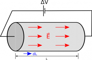 For example, suppose we have a resistor that has a cross sectional area of $A$, a length $L$, and a potential difference of $\Delta V$ from one end to the other. If we assume a steady state current, then the electric field inside the resistor would be constant in magnitude and direction and would point along the length of the wire. We could use the relationship between electric potential and electric field then to write: $$\Delta V =- \int_i^f \vec{E} \cdot \vec{dl}$$